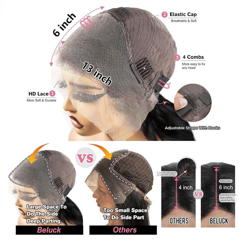 - ★【13 x 6 lace front wig material】: This wig is made of high-quality Brazilian real hair, soft and fluffy. Pre plucked high density lace makes your wig more natural, without shedding or odour
