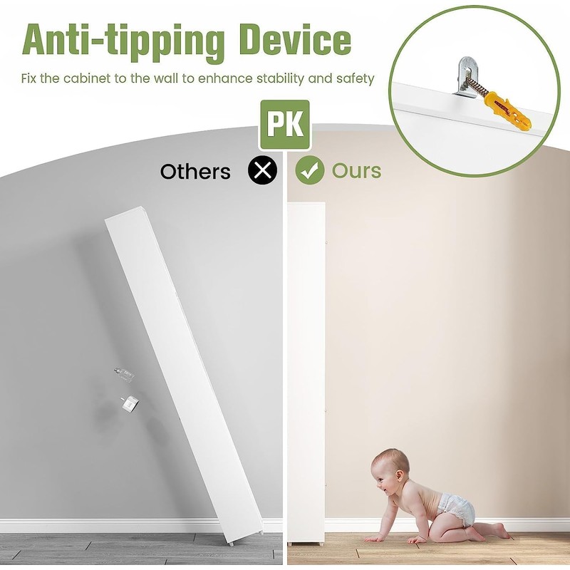 - 【Anti-tip & Raised Bottom Design】: The floor cabinet comes with an anti-tipping device on the back, ensuring good stability and safer home environment. The elevated bottom design dispels worries about water accumulation, greatly extending the service life.
