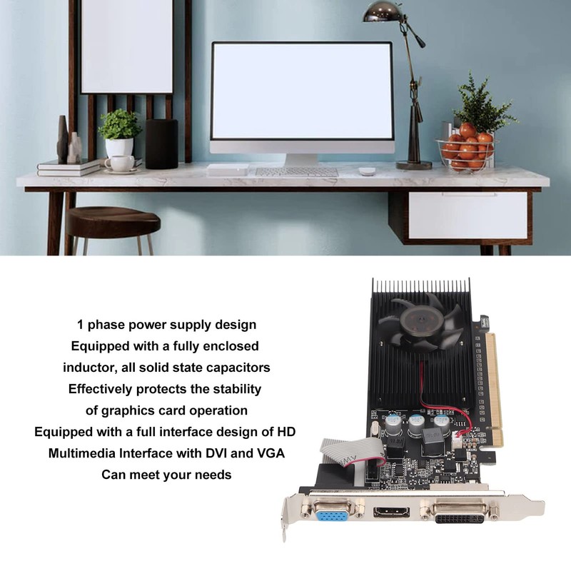 - Power Supply Design: The GT610 graphics card uses a PCB design with a 1 phase power supply design for the core part, equipped with a fully enclosed inductor and full solidly state capacitors to effectively defend the stability of the graphics card ope ion.
