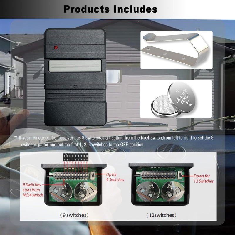 - đăWidely Compatible ReplacementăThis garage door opener remote features 9 or 12-position DIP switches, offering perfect compatibility with Genie and Overhead Door systems. It serves as an ideal replacement for GT90, GT90-2, GT90-3, AT90, MAT90, CT90, LD12, AT290, GPT90-1, LDT90.