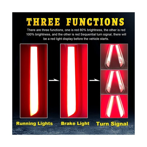 - It replaces the stock windshield outside liftgate Molding trims and functions as Add-on LED Tail Running Light (50% Red Brighter), Brake Stop Light (100% Red Brighter) and Sequential Red Turn Signal Indicator Light in OEM fitment