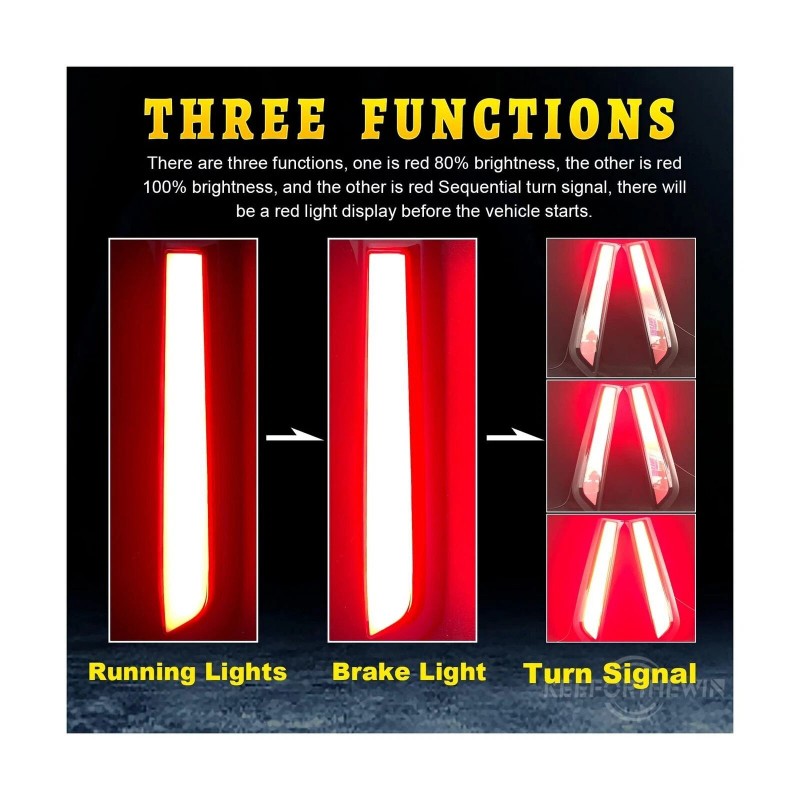 - 3 Functions:Replace OEM LH/RH Rear Windshield Outside Liftgate Molding Trims with LED as add-on tail lights (50% Red Brighter), brake lights (100% Red Brighter) and turn signal lights (Dynamic Sequential Red Lighting).