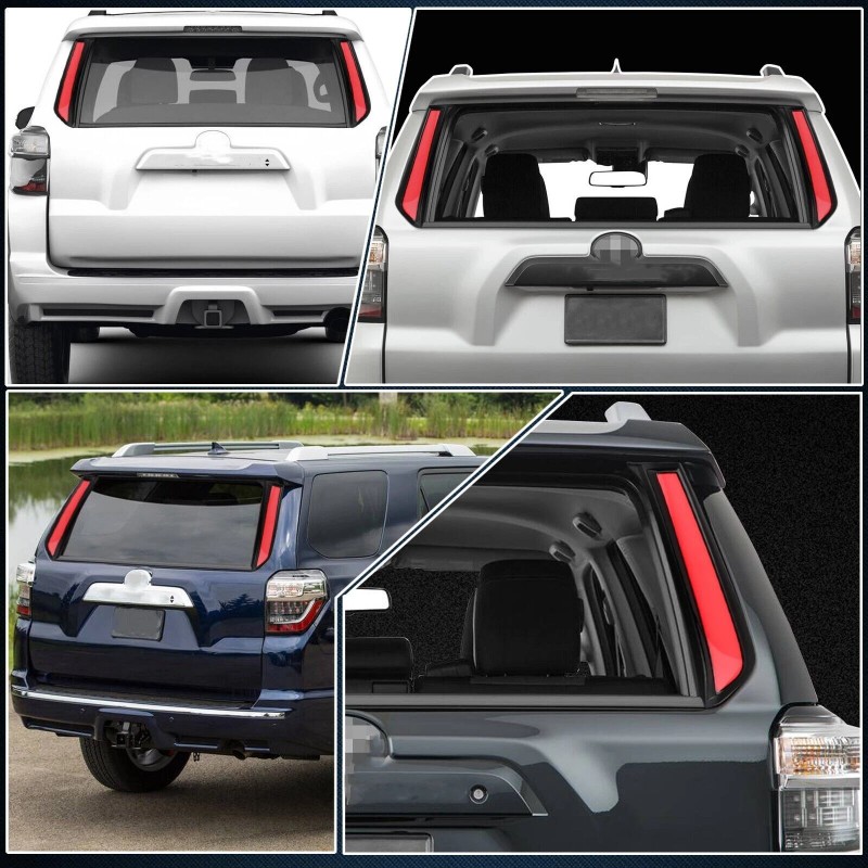 - Interchange Part Number: Brake Light+Running Light+Turn Signal Function, Plug and Play Sequential LED Reflector Lights, ABS Plastic and High Quality LED, Lower Power Consumption, Save Whole of Energy, Square Dot Type LED Design, Floating Sequential Run-Through Effect, Full LED Taillight Brake Light Kit, Rear Windshield Side Reflectors To LED, Compatible With 2010-2023 Toyota 4Runner, Rear Windshield Outside Liftgate Molding, Smoked Lens Full LED Vertical Fit Tail/Brake Light Bar Kit