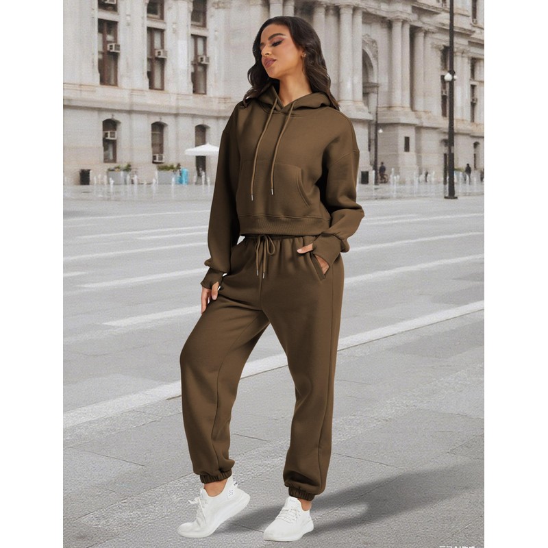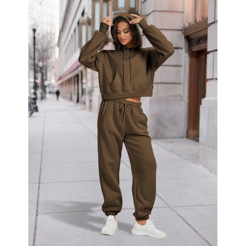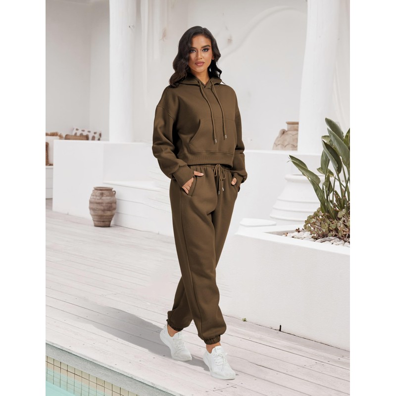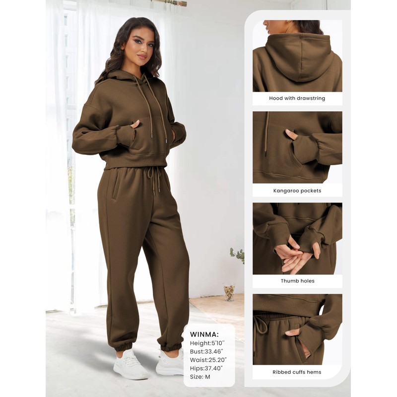 GTLIAE Sweatsuits for Women 2 Piece Set Crop Fleece Lining Hoodies Jogger Sweatpants Sweat Suits(Coffee-M)