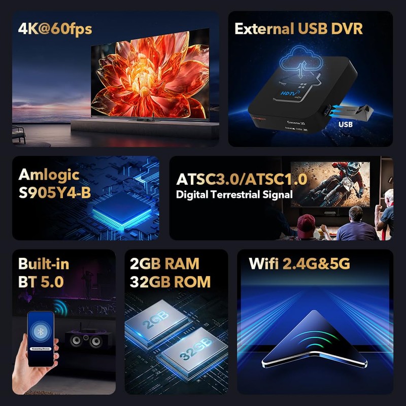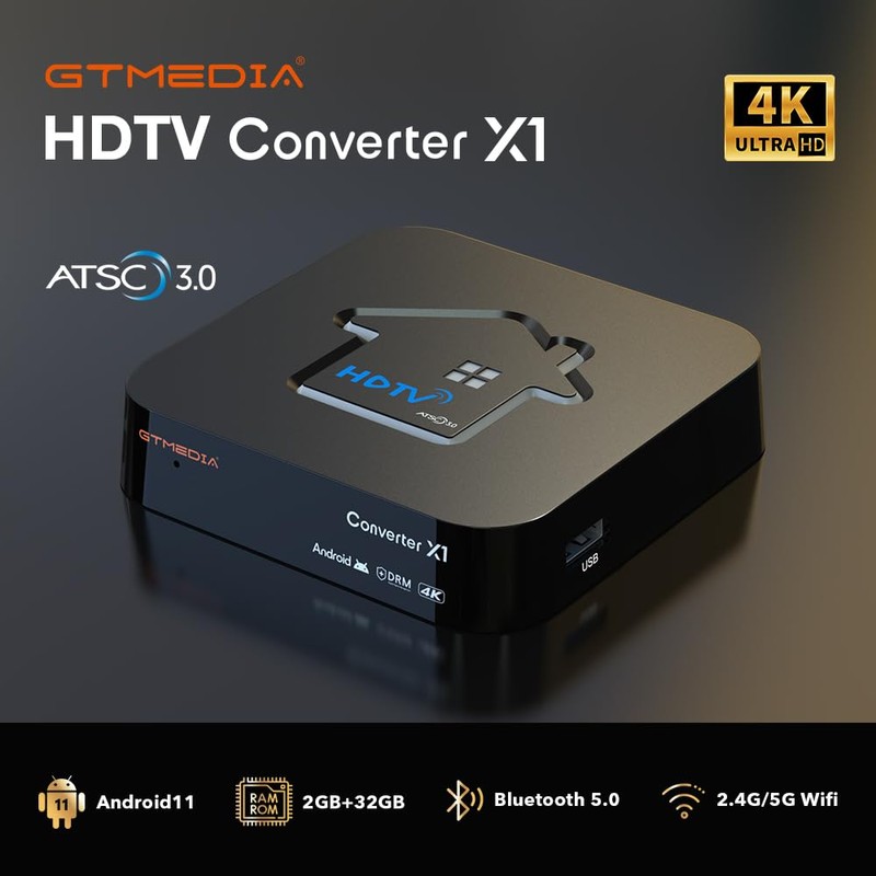 GTMEDIA HDTV Converter X1 Compatible with ATSC3.0 / ATSC1.0, Support ATSC3.0 DRM Channel Play, DVR Recording, Bluetooth 5.0, Built in 2.4G 5G WiFi, 2G DDRIII 32G EMMC