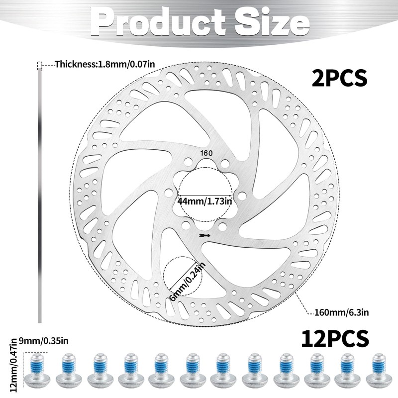 - Product specification: The set contains 2 pieces of 160 mm bicycle brake discs and 12 matching screws, suitable for most bicycles with 6-hole standard. Ideal for amateur cyclists and professionals looking for a high-quality braking solution for their bicycles