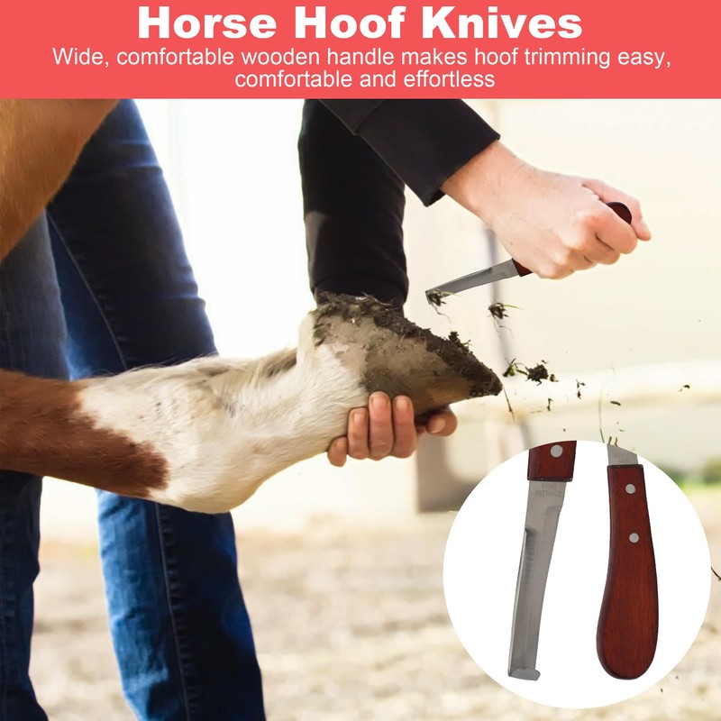 Horse hoof knives with wide, comfortable wooden handle makes hoof trimming easy, comfortable and effortless