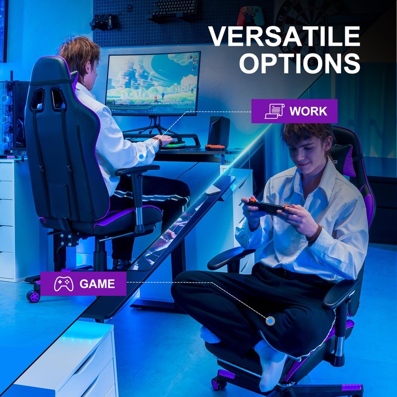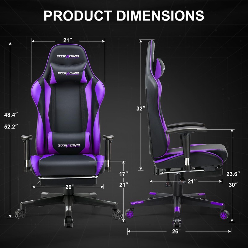 GTRACING Gaming Chair with Footrest, Ergonomic Computer Game Desk Chair, Recline Gaming Chair Seat Height Adjustment, Swivel Rocker with Headrest and Lumbar (Purple)