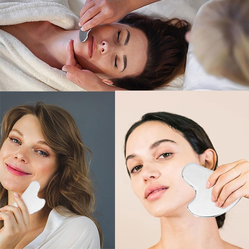 - 【Premium Material】The gua sha tool is made of high-quality stainless steel with a clear, smooth, and durable texture that won't harm the skin, will not easily break, use a long time.