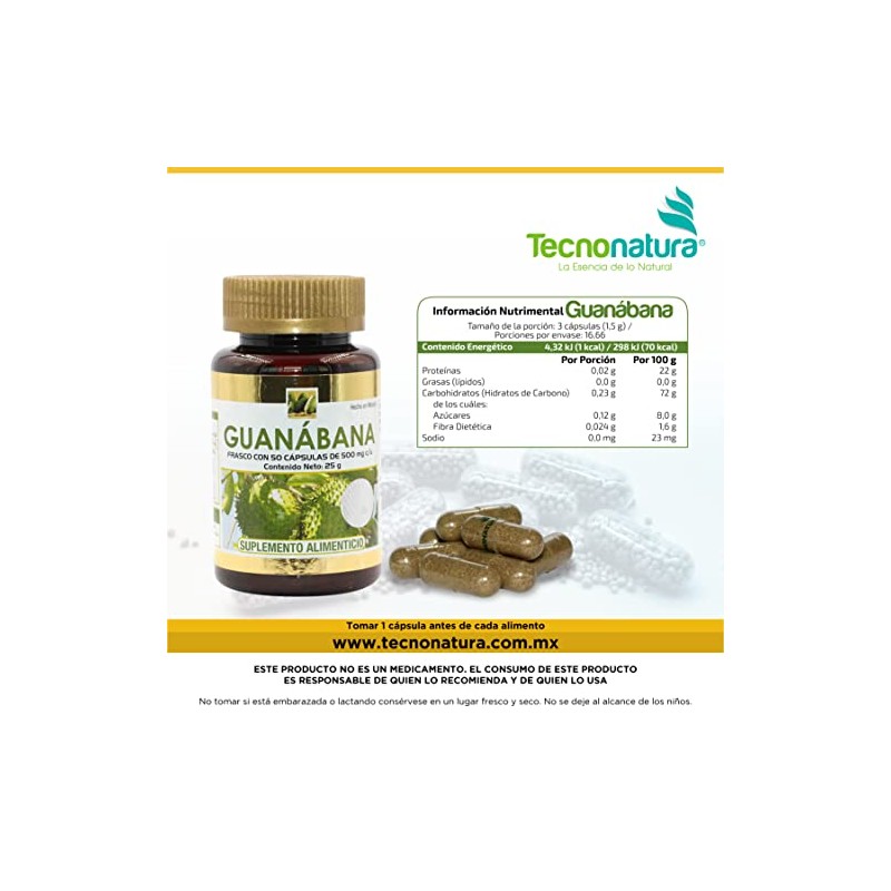 GUANABANA 50 CAPSULAS TECNONATURA - Producto Original de Alta Calidad, Entrega Rápida y Segura, Garantía Incluida
