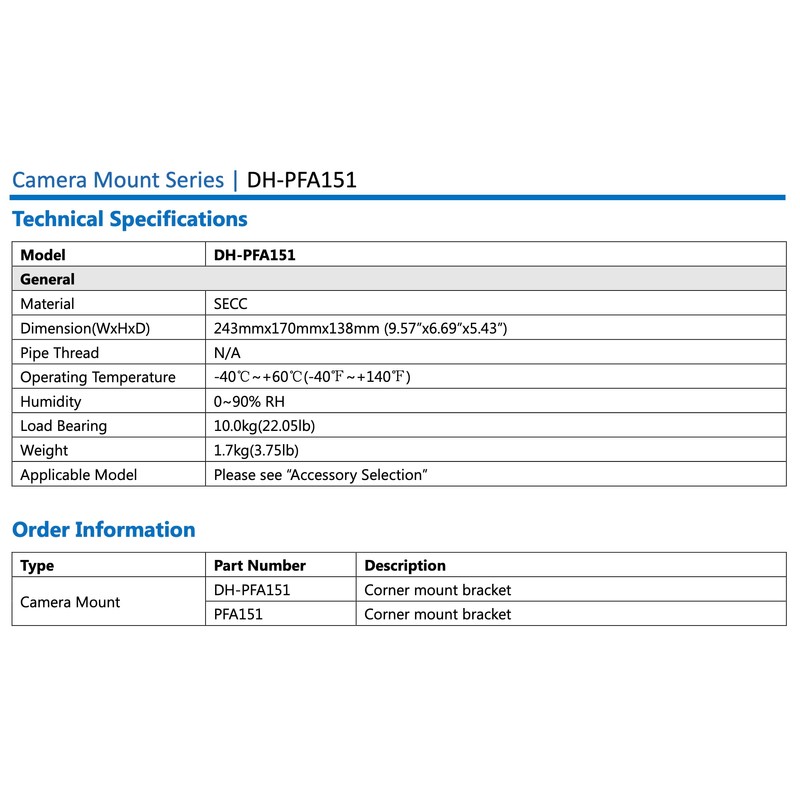 Guangstar PFA151 Corner Mount Bracket for Dahua Bullet and PTZ Cameras, White