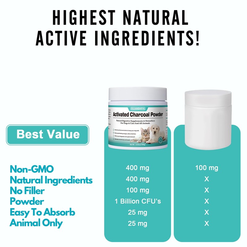 Activated Charcoal for Dogs, Cats, and All Pets, Charcoal for Dogs Poisoning, Digestive Upset and Gas Relief, Liver Support, Non-GMO, Gluten Free,3.53oz(Powder)