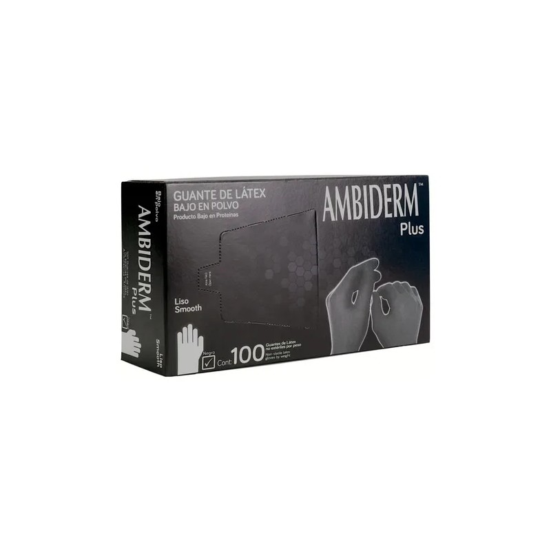 Guantes descartables Ambiderm Plus color negro talle P de látex con polvo x 100 unidades