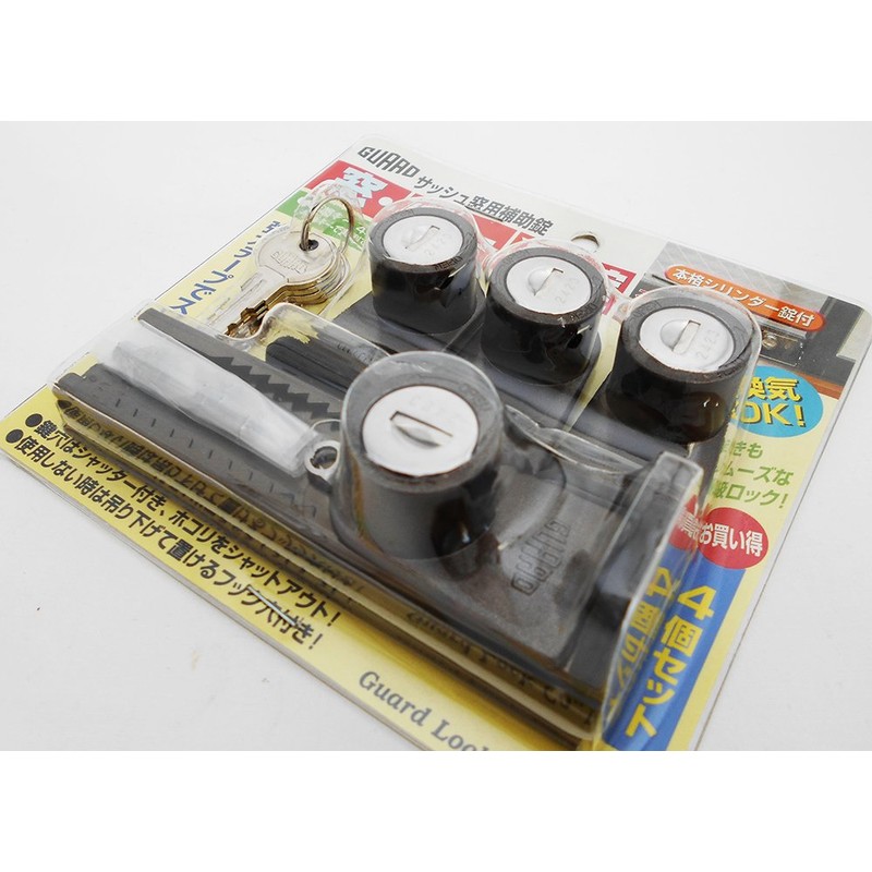 GUARD No.540-4B Sash Window Auxiliary Lock, Window and Burr Crime Lock, Bronze, Set of 4