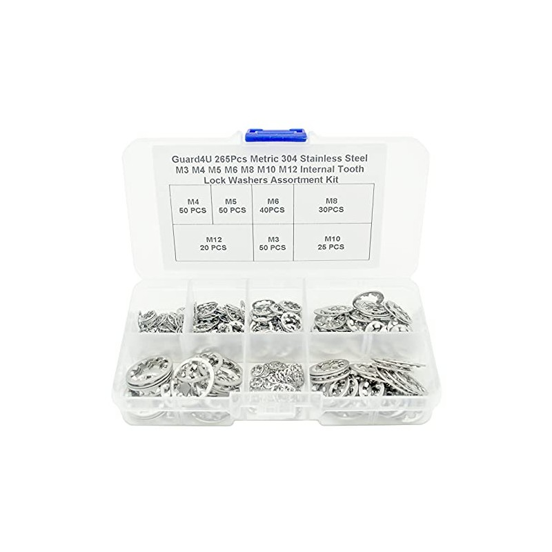 Guard4U 265Pcs Metric 304 Stainless Steel M3 M4 M5 M6 M8 M10 M12 Internal Tooth Lock Washers Assortment Kit