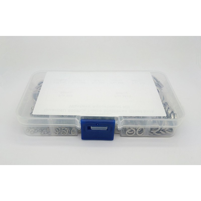 - Stainless Steel lock washer assortment kit, packed in a plastic box, 7 sizes, total 500 pieces
