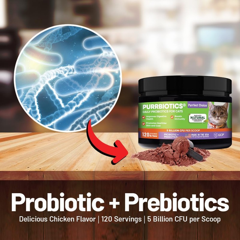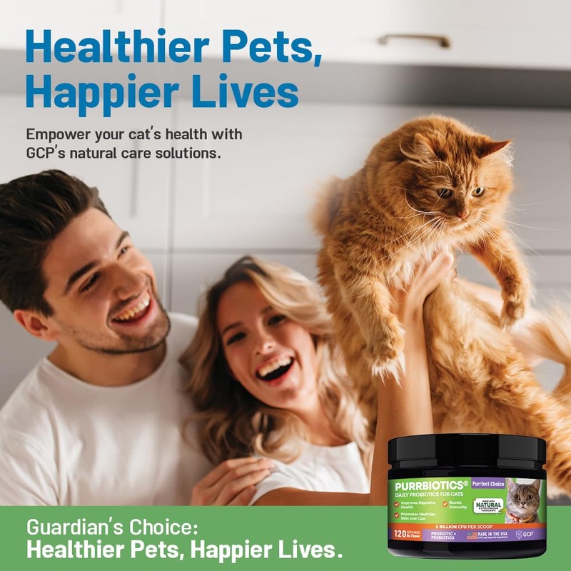 Guardian's Choice Purrbiotics® – Cat Probiotics Powder for Digestive Health – 5 Billion CFU – 120 Servings – Prebiotics, Fiber, Chicken Flavor – Made in USA