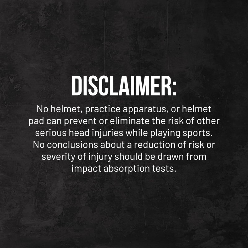 • DISCLAIMER WARNING | No helmet, practice apparatus, or helmet pad can prevent or eliminate the risk of other serious head injuries while playing sports. No conclusions about a reduction of risk or severity of injury should be drawn from impact absorption tests.