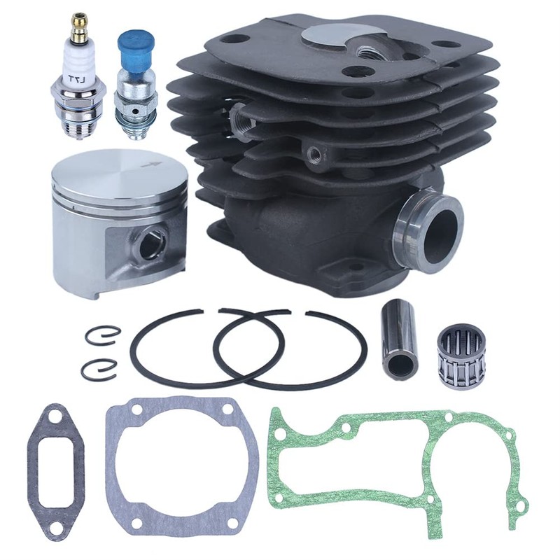 - What you get: 1 x cylinder piston set, 1 x spark plug, 1 x decompression valve, 1 x needle bearing, 1 x cylinder base, 1 x crankcase seal, 1 x exhaust gasket.