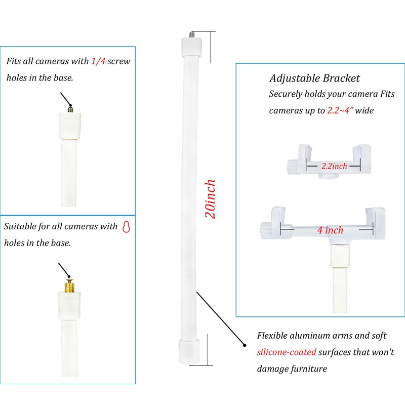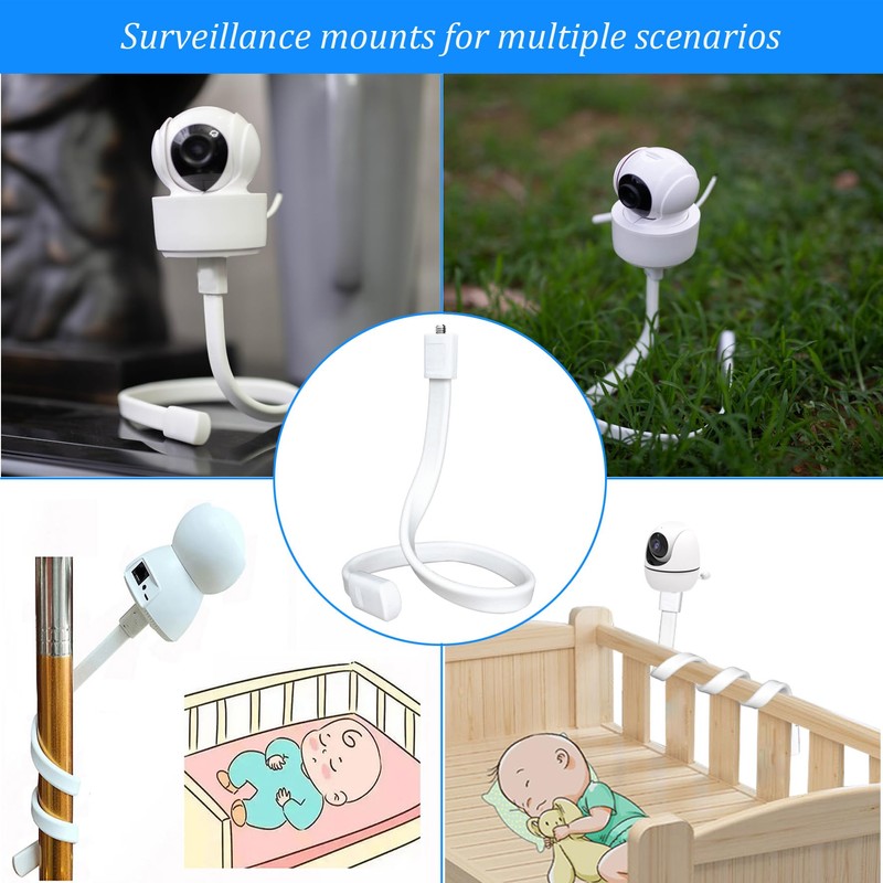 - PERFECT VIEWING ANGLE FOR BABY--The baby monitor stand holds your baby monitor in the best position and helps you adjust to the best camera angle. All you need to do is bend and turn the flexible wrap-around cable, which can be wrapped around a crib, shelf, window sill, or other piece of furniture to get the perfect viewing angle of the monitor.