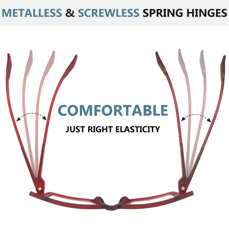 • 🌟 METALLESS & SCREWLESS SPRING HINGES reading glasses do not require screws, which supported by the authorized patent. Unique spring hinges without metal innerspring.
