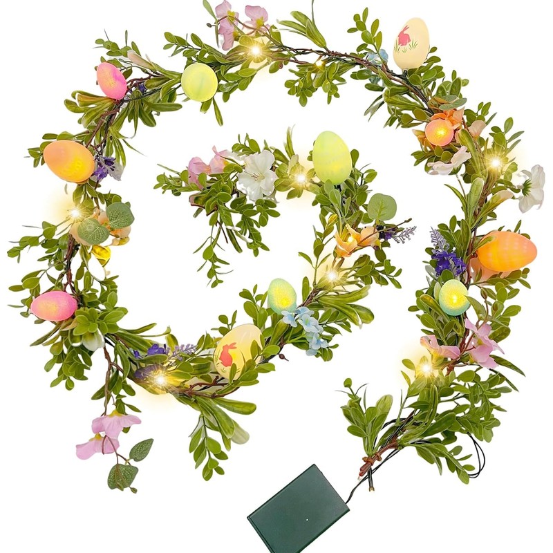 Gudegou 6FT Easter Garland for Mantle, Spring Garland with Eggs Flowers, Ligh...