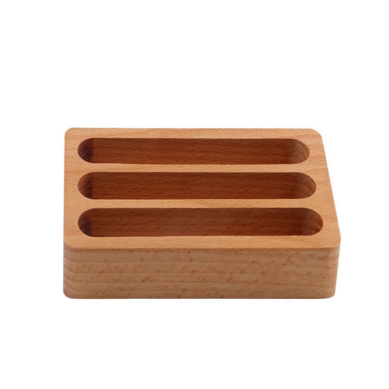 GUDEKIKL 1Pcs Wooden Business Card Holder, Solid Wood Card Display Stand, With 3 Slots Card Storage Case, Memo Name Card Organizer Rack For Office Desktop