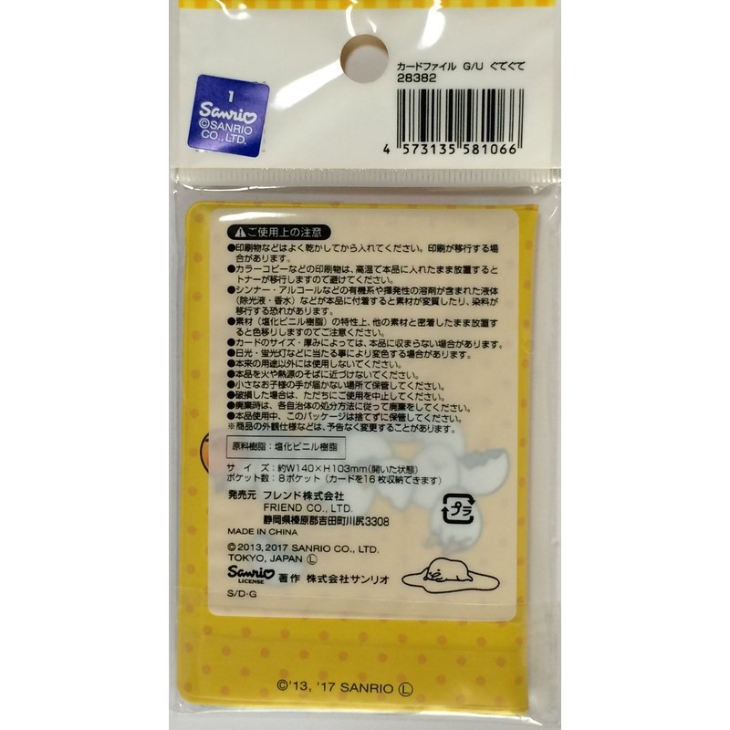 サンリオGudetamaカードファイルケース8ポケット16シートストレージ( Gudegude )