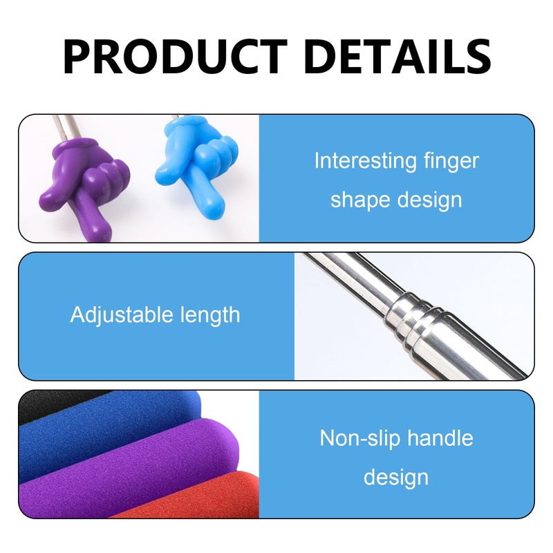 • ➤Unique Design: Pointer stick adopts a playful finger design with bright colors, which is both cute and charming. teachers helps to attract students' attention, encourage students to actively participate, and enhance the classroom atmosphere, making learning more enjoyable and the environment more attractive.