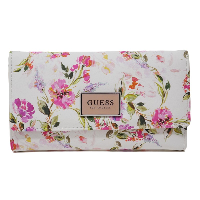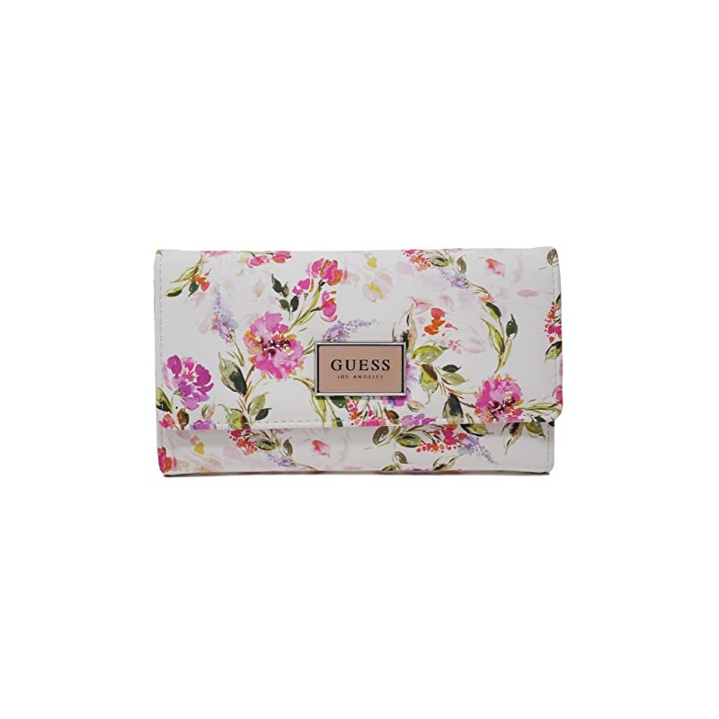 GUESS Factory Abree Logo Saffiano Slim Wallet, White/Opulent Garden, One Size, Slim Wallet, White/Opulent Garden, Slim Wallet