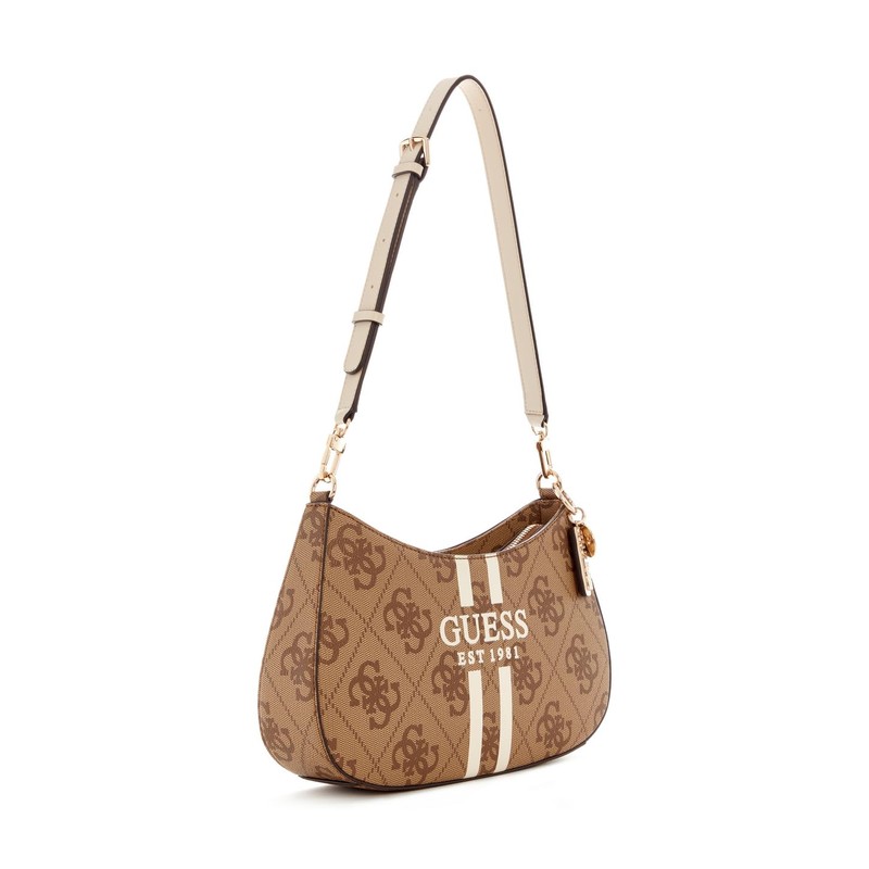 GUESS Noelle II Top Zip Shoulder Bag Latte Logo