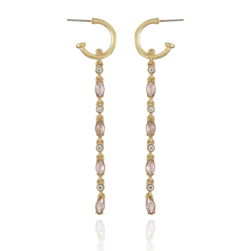 GUESS Open Huggie Hoop Pink Stone Linear Earrings