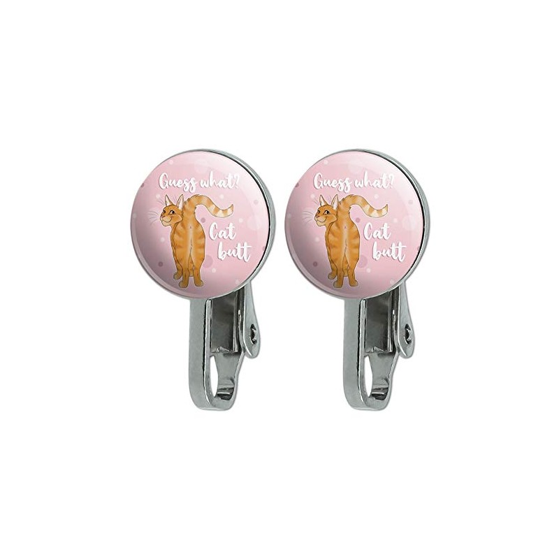 Guess What Cat Butt Novelty Clip-On Stud Earrings