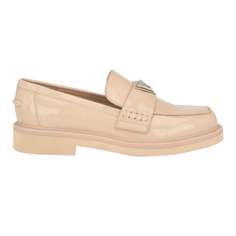 GUESS Women's SHATHA Loafer, Light Natural Patent, 11