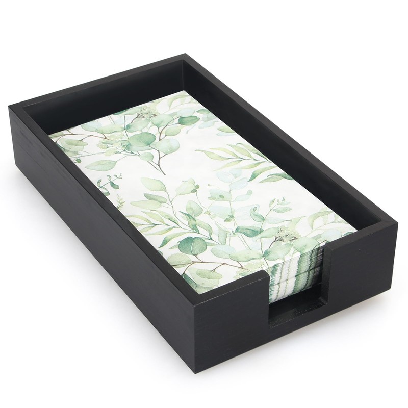 - 【Sturdy & Classy 】 : Made to last, love how sturdy it is, looks beautiful. This black wood napkin holder is so fashionable and adds a nice flavor to my bathroom! Perfect as black bathroom decor tray for countertop, hand towels holder, kitchen flat napkin holder.