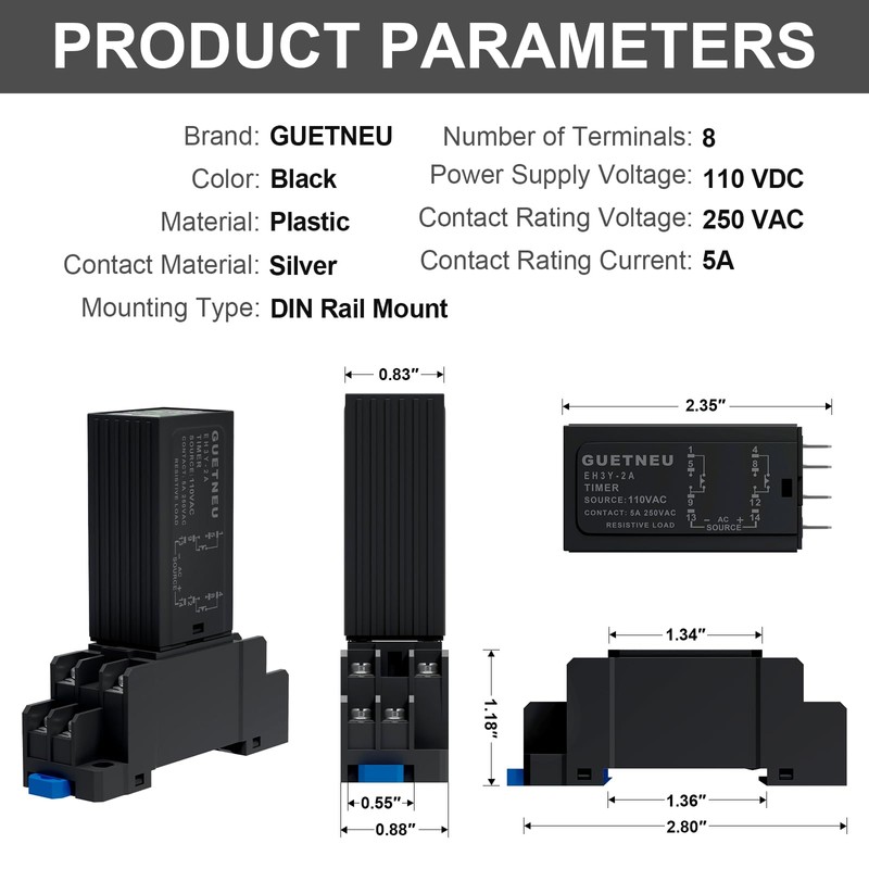 GUETNEU LCD Digital Display Time Relay, Time Control Delayer, Dual Time with Plug-in Terminal Socket, 8-Pin 110 VAC DPDT Time Delay Relay (H3Y-2)