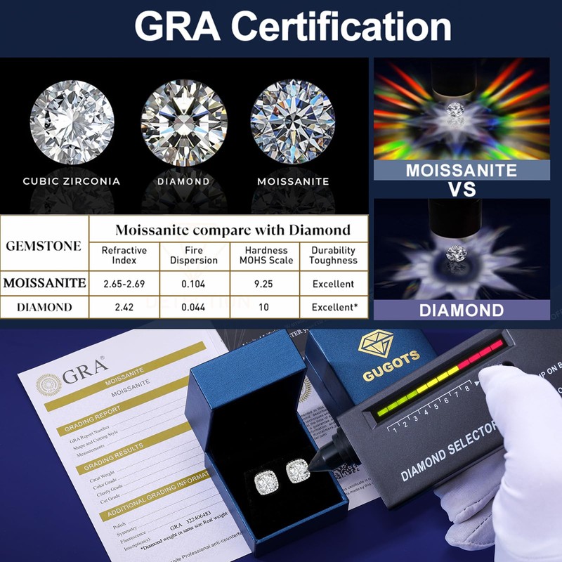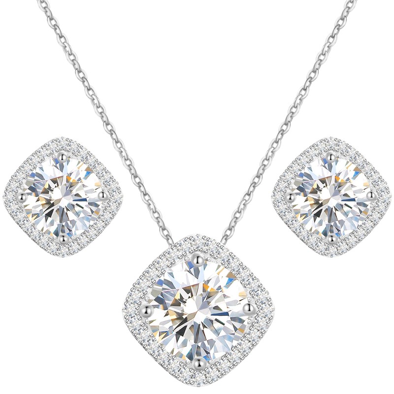 • 【Top Quality Affordable Moissanite Diamond】Our moissanite square earrings necklaces set are made with high-quality lab-created gemstones that have a 100% pass rate on diamond testers. Compared to natural diamonds, our lab-created moissanite diamond are an eco-friendly alternative. More fashionable than pearl jewelry, better quality than those cubic zirconia cheap jewelry, and more cost-effective than natural diamonds, it is the best choice for wedding and prom jewelry.