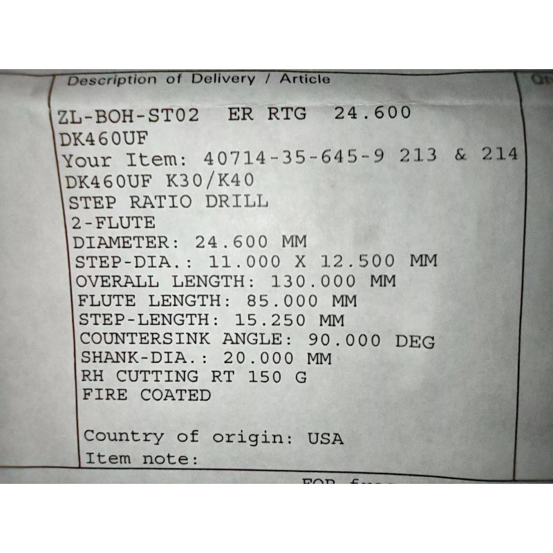 GUHRING - 2 Flute Combo Drill/Counter Bore - 24.6mm Dia (IPS Item #1465)