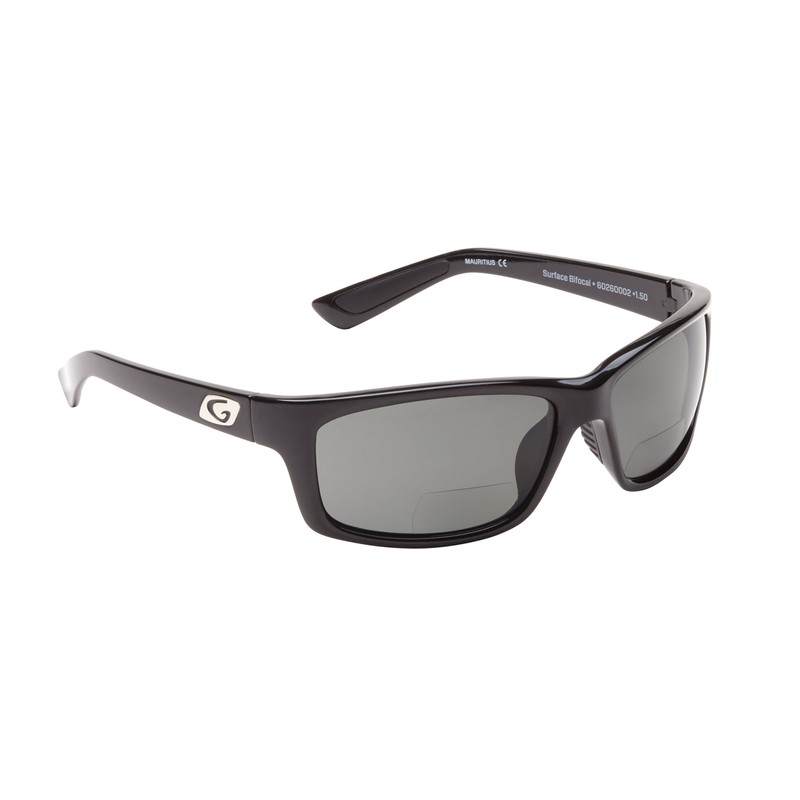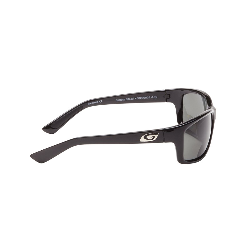 Guideline Eyegear Surface Fishing, Boating, Water Sports Polarized Bifocal Sunglasses with Deepwater Gray Lens, Shiny Black Frame(+1.50)