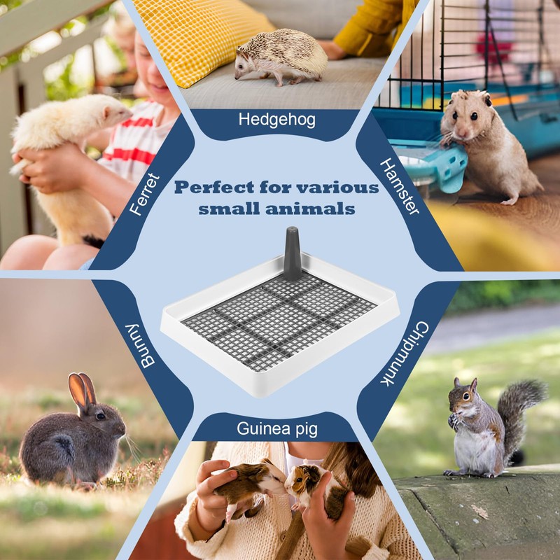 Introducing the Guinea Pig Litter Box for Cage, a convenient and hygienic solution for your furry friends. This rectangular litter pan with a grid design makes potty training your guinea pigs, rats, chinchillas, hedgehogs, hamsters, ferrets, and rabbits a breeze.