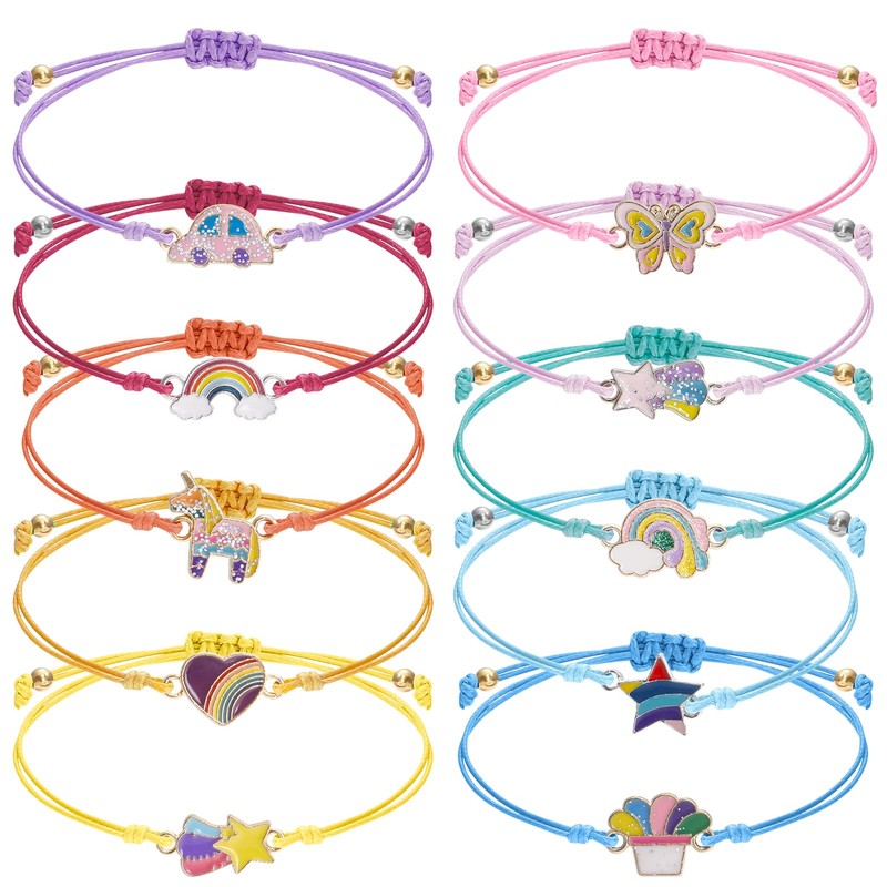Guiqulai 10 PCS Cute Friendship Bracelets Bulk for Girls, Adjustable Unicorn Glitter Charms Bracelets for Birthday Carnivals Loot Bag Stuffer