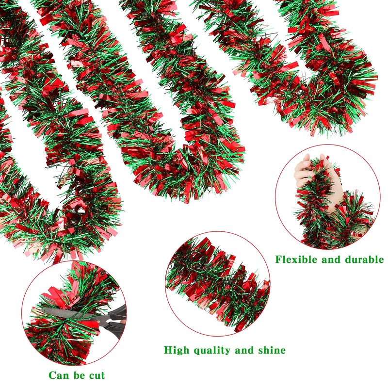 - Color brillante: guirnalda de oropel de Navidad fijada con tecnología de color avanzada, asegurando un aspecto brillante y brillante que captura el espíritu navideño, y todas las imágenes se toman en disparos reales, garantizando recibir regalos satisfactorios