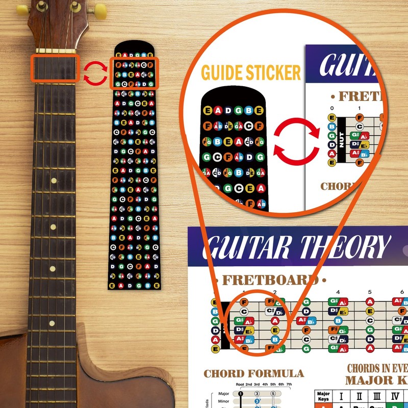 Guitar Chords Triads Scales Circle of Fifth Theory Aesthetic Educational Posters Chart Laminated (11" X 17")with Chord Wheel, 2X Fretboard Sticker for Guitar Learning Beginner Stater Pack