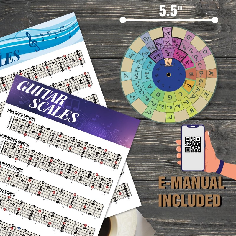 • EDUCATIONAL DESIGN: 7 elegant Posters cover major, minor, major 6/7th, minor 6/7th, Sus4 and diminished chords for all 7 key tones. Triads, Scales. Features a comprehensive circle of fifths diagram and Chord Wheel that helps musicians understand chord progressions and key relationships.