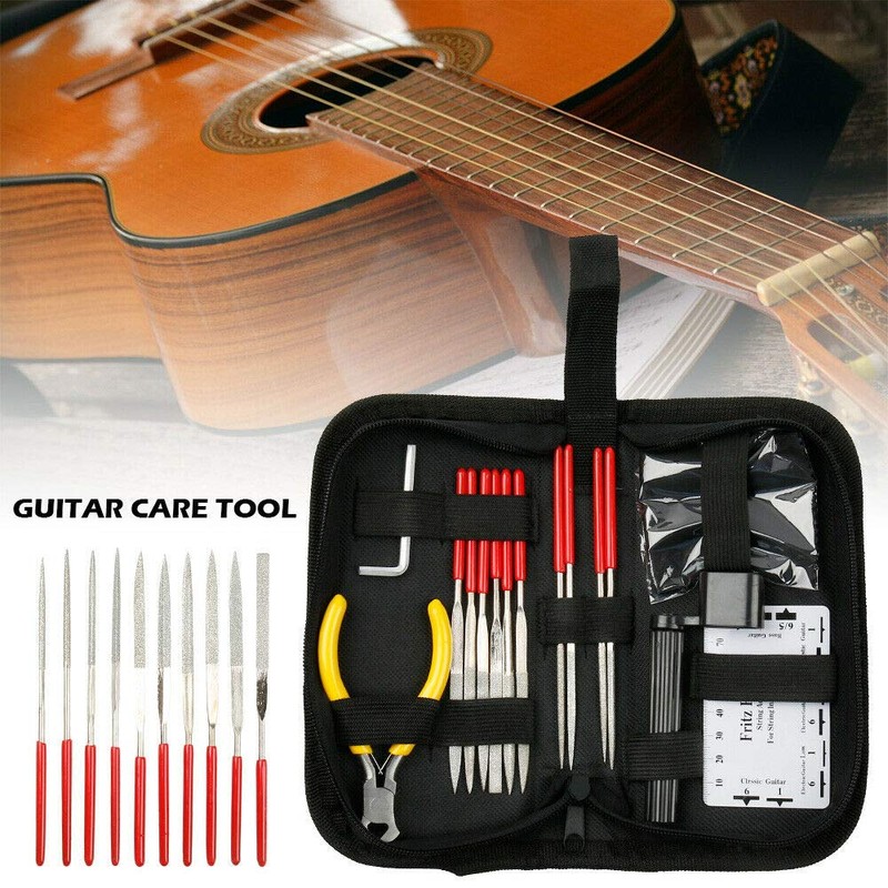 Guitar Repair Kit, Guitar Maintenance Tools with Guitar Needle File/String Action Ruler Gauge/String Winder and Cutter/Guitar Wrench for Guitar Bass Stringed Instruments