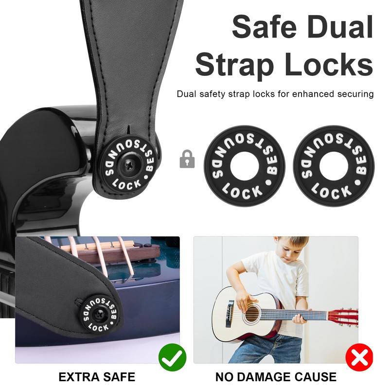 • FUNCTION - Firmly lock your strap not slide out, keep your precious instruments more secure.