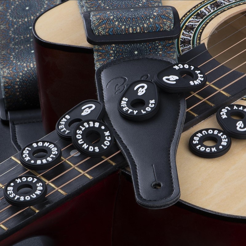 Guitar Strap Blocks, 6PCS Premium Silicone Safety Locks (White)