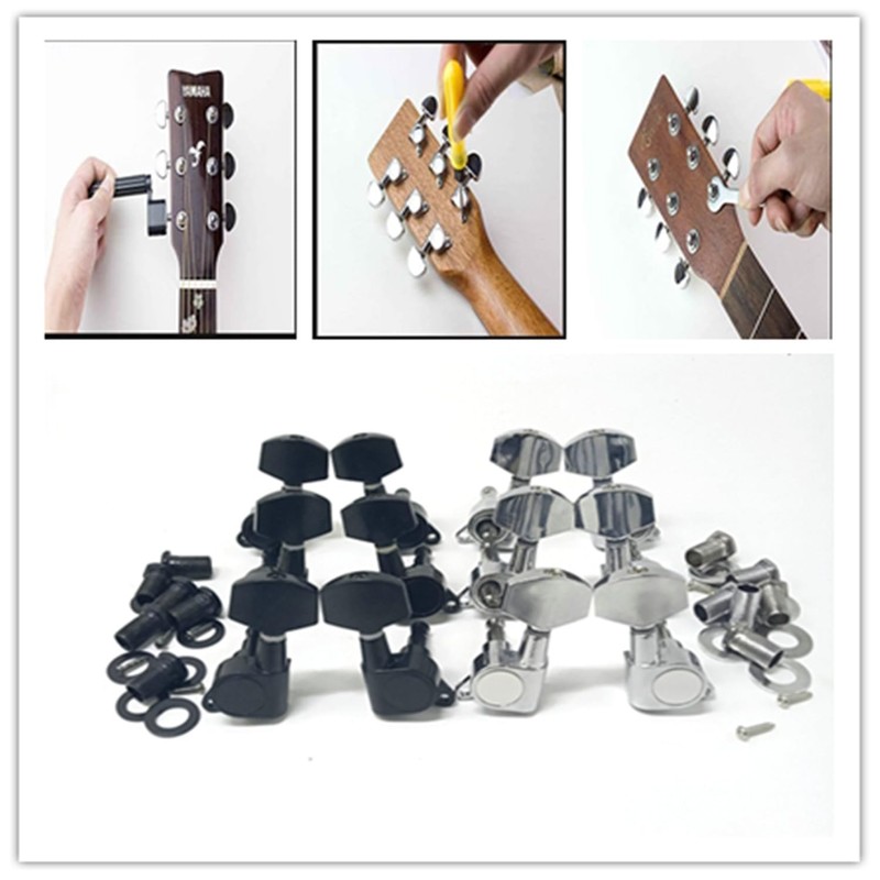 - This set includes 6 pieces guitar machine heads, 6 piece screws, 6 piece washers and 6 pieces screw nuts.