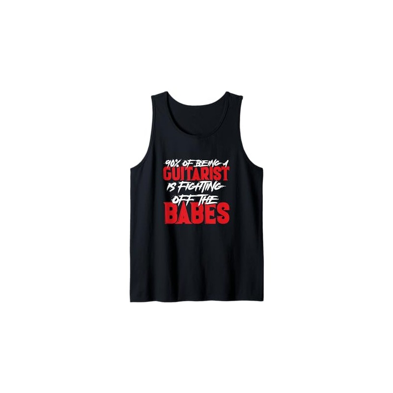 - Rock out with this bold and cheeky design that jokes 90% of being a guitarist is just fending off the babes. Perfect for players who live for loud riffs and laughs, with a blend of script and block fonts for visual punch.