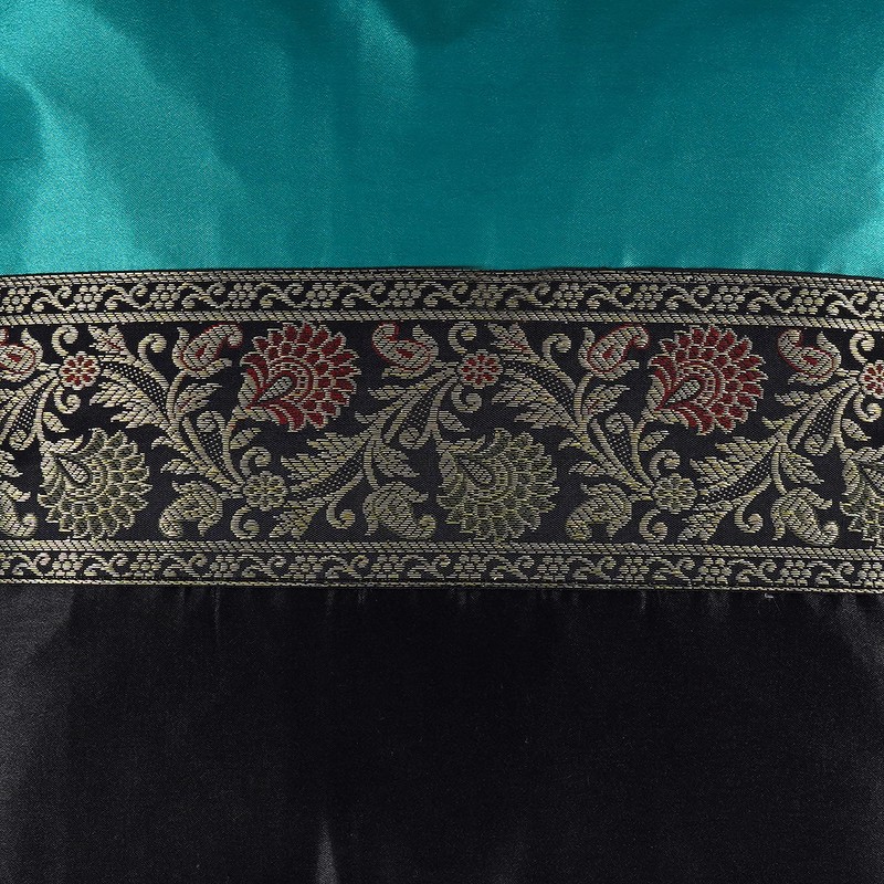 GULAAL ART Teal Blue & Black Indian Soft Silky Satin Cushion Covers Square Throw Decorative Pillowcases for Couch Sofa Home Decor Ethnic Pillow Covers 18X18